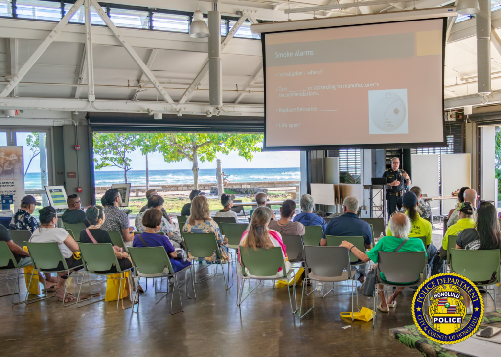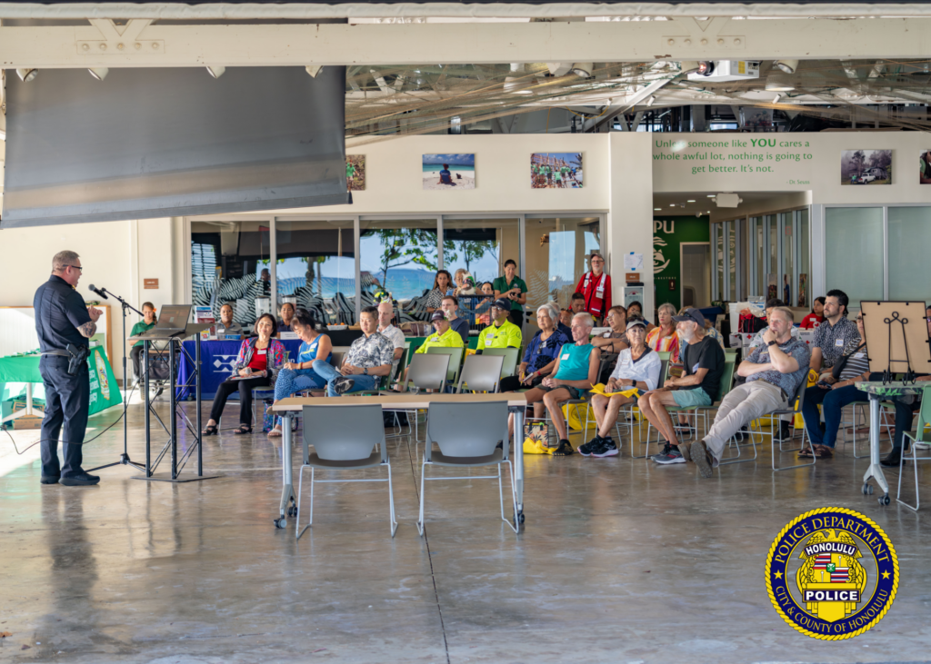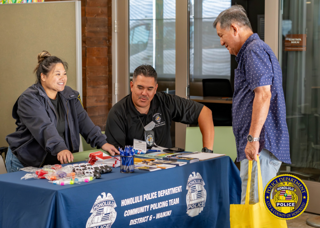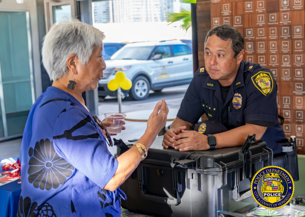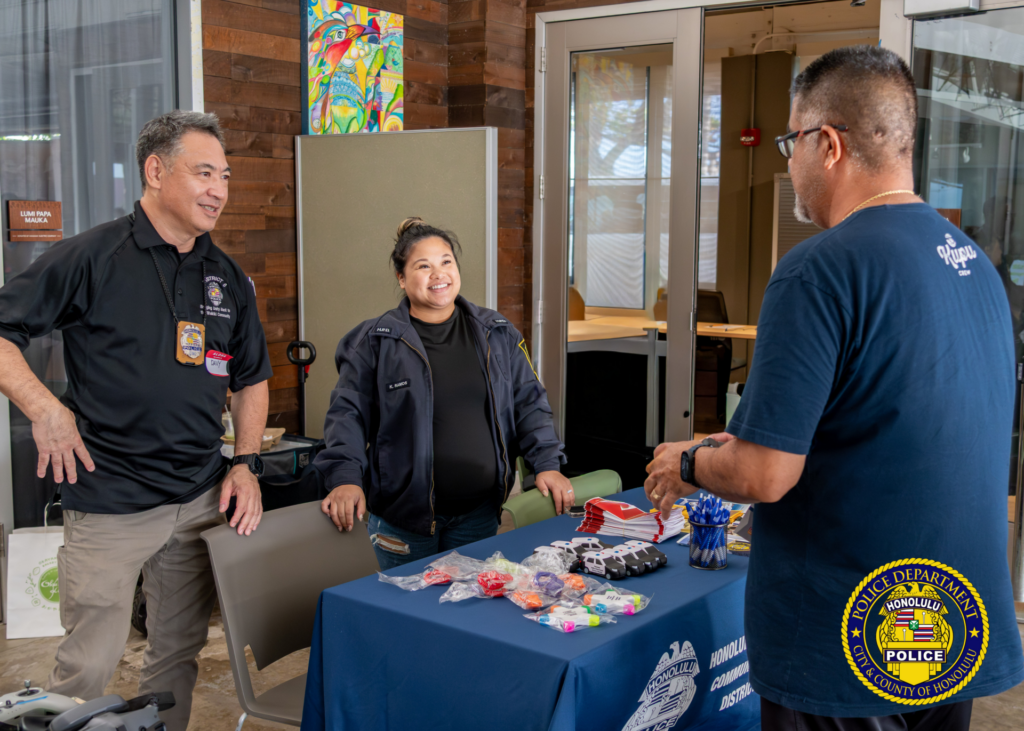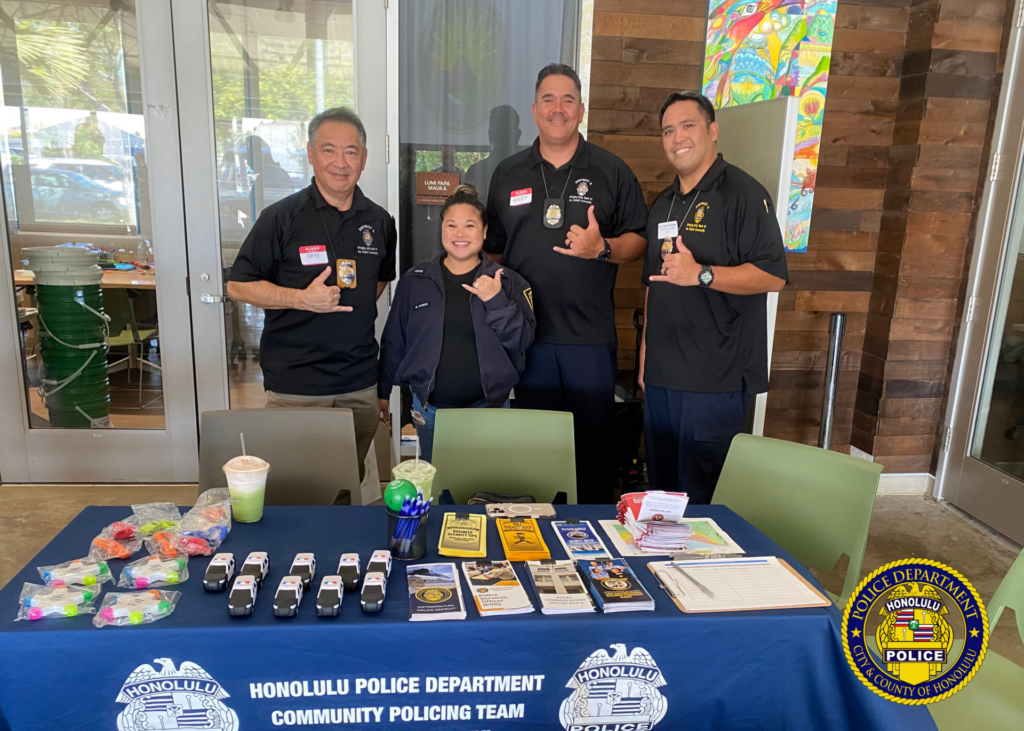 HPD’s Patrol Districts 1 and 6, along with the Major Events Division (MED), attended a Disaster Preparedness Fair hosted by Senator Sharon Moriwaki. District 1’s Acting Major, Henry Robert, shared information with community members on HPD’s role in disasters and how to maximize their preparedness. The District 6 Community Policing Team spoke one-on-one with attendees, handed out informational brochures on making to-go kits, and provided evacuation maps. MED Lieutenant Roger Wong showcased our Unmanned Aircraft System (UAS), which included an informational brief, a static display, and a live flight demonstration to show how technology could be used for evacuation route management and search and rescue. Officers in the HPD often collaborate among internal districts and divisions, as well as with outside partners, to keep our communities ready and safe.