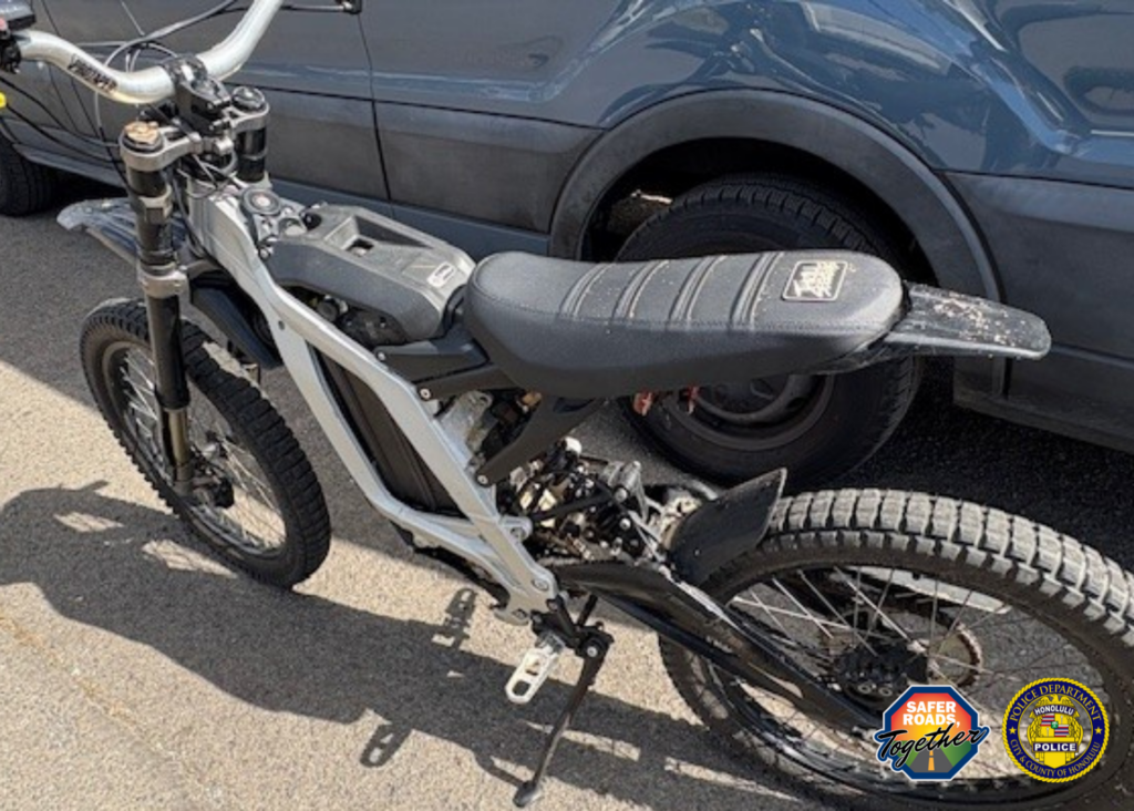 On November 11, District 8 Support Unit officers carried out an enforcement operation in the Kapolei and ‘Ewa areas. During the operation, officers issued 16 citations for no registration and no safety check, along with one citation for a motorcycle rider carrying a passenger under the age of seven. They also issued nine warnings and recovered six e-dirt bikes.