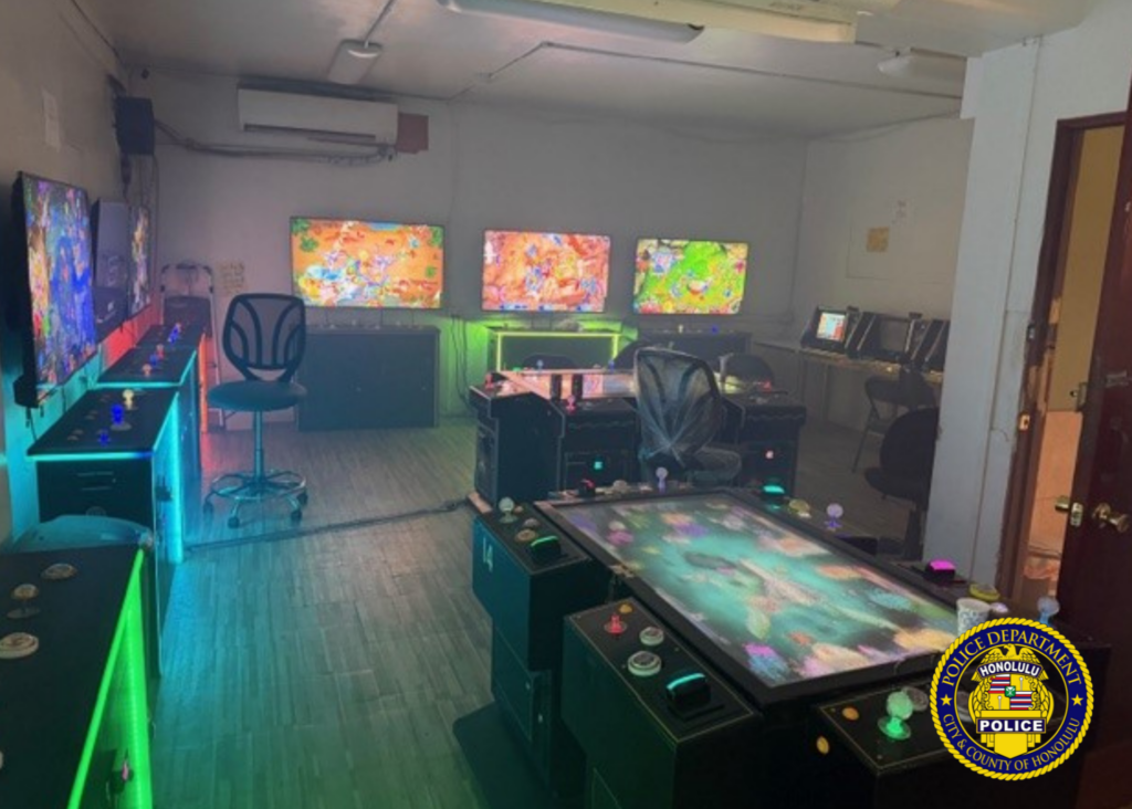 At approximately 5 p.m., the Narcotics/Vice Division Gambling Detail, with assistance from the District 1 Crime Reduction Unit, Forfeiture Detail, Airport Operations Group, and the Specialized Services Division, served a search warrant on an illegal game room located on Kawaiahaʻo Street.