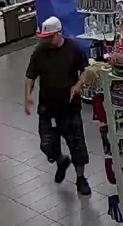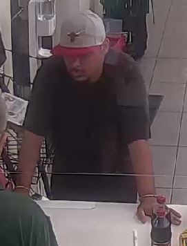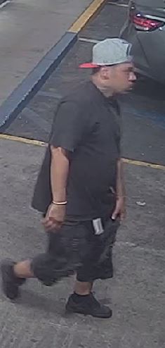 DESCRIPTION OF SUSPECT: Unknown male suspect; 20 to 30 years of age; 5’7″ to 5’10” in height with a medium build and complexion; with short black hair, mustache and goatee. Wearing a black t-shirt and shoes, dark colored pants, and Chicago Bulls ball cap.
