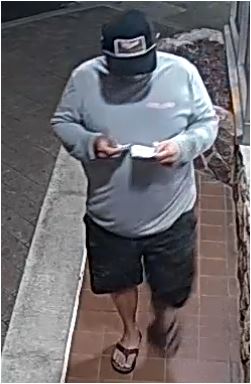 On Saturday, August 23, 2025, at approximately 4:53 a.m., an unknown male suspect deposited a forged check into an ATM in Kaimuki.