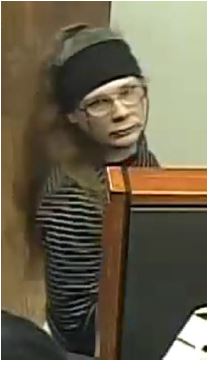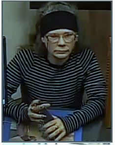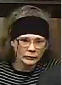 DESCRIPTION OF SUSPECT – Unknown female, fair complexion, light brown and gray hair; and wearing a black headband, eyeglasses, black and white long sleeve top, black pants, and black footwear