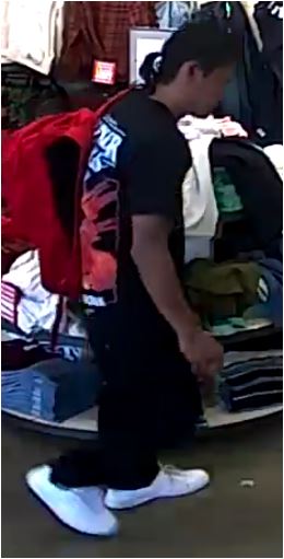 DESCRIPTION OF SUSPECT #1 – Unknown male, thin build, medium complexion, medium length dark colored hair; wearing a black short-sleeve shirt, black pants, and white athletic shoes