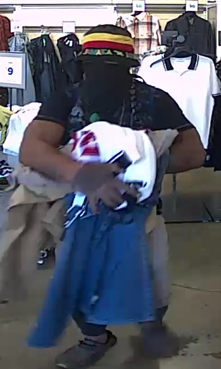 DESCRIPTION OF SUSPECT #2 – Unknown person, heavy build, dark complexion; wearing a red, yellow and green bucket hat, light colored pants, and dark colored shoes