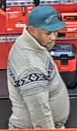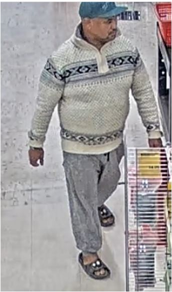 DESCRIPTION OF SUSPECT – Unknown Polynesian male, large build, brown complexion; wearing a tan sweater, gray sweatpants, black sliders, and a gray baseball cap
