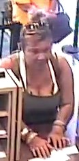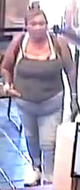 DESCRIPTION OF SUSPECT – Unknown female, heavy build, medium complexion, brown hair; wearing brown shirt, blue jean pants, white shoes