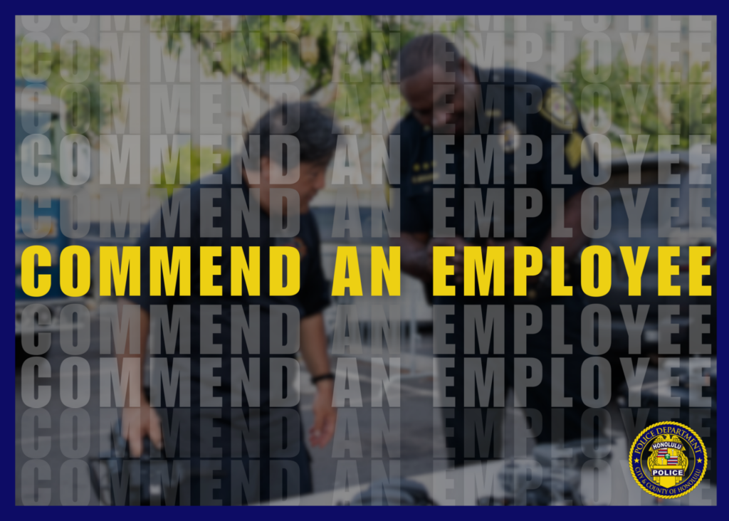 The Honolulu Police Department is very proud of its employees, both civilian and sworn, especially when they go beyond the call of duty, as they so frequently do. If you have witnessed an officer or civilian employee who has exemplified our motto of “Serving and Protecting with Aloha,” then we would like to hear about it.