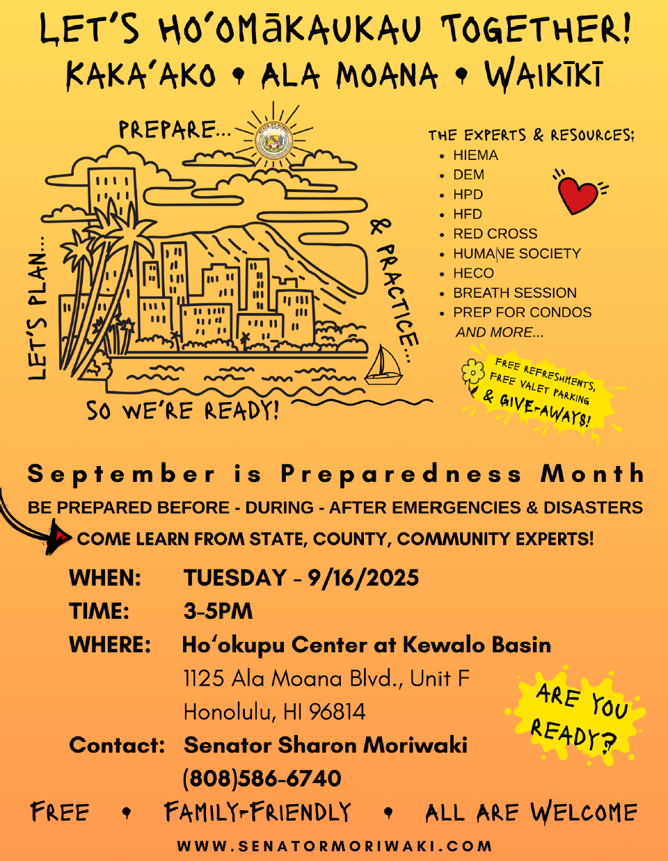 Come and join HPD and students from the community in our Safer Roads Together Campaign. This event will be held at the following school, please come and show your support. 9-9-25 / 0715 hours @ Kaplama Elem. School 9-16-25 / 0715 hours @ Ka'ewai Elem. School 9-23-25 / 0715 hours @ Likelike Elem. School 9-30-25 […] Come and join HPD and students from the community in our Safer Roads, Together campaign! This event will be held at the following areas, dates, and times: 09/09/2025 @ 0730–0800 hoursAla Moana Boulevard and Hobron Lane 09/16/2025 @ 0730–0800 hoursMcCully Street and Ala Wai Boulevard 09/23/2025 @ 0730–0800 hoursKalākaua Avenue and Kapahulu Avenue 09/30/2025 @ […] |
