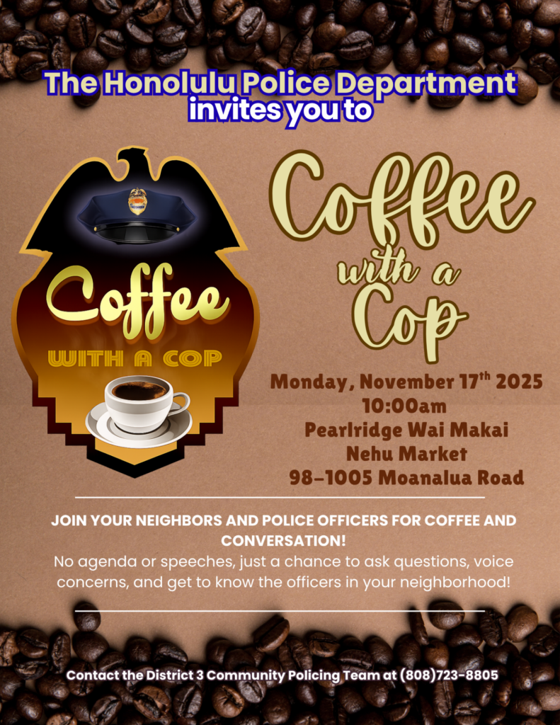 Disclaimer: It is highly recommended to not bring any valuables with you, or leave them in your vehicle. The City & County of Honolulu, The Honolulu Police Department, and/or any of its employees are not responsible for any loss, theft or damage, should they happen during the event.