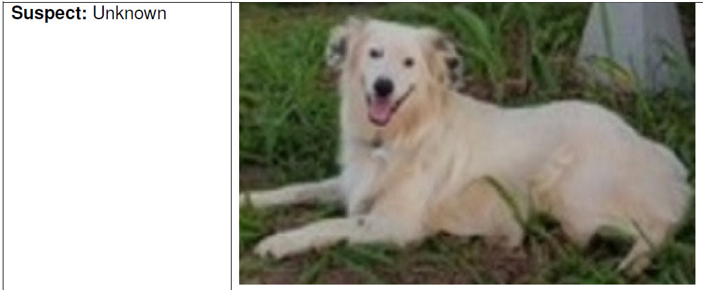 On Thursday, November 17, 2022, at approximately 4:30 p.m., an unknown person shot a dog with a firearm in the Waialua area. The dog was taken to a veterinary hospital where it underwent surgery and is currently recovering.