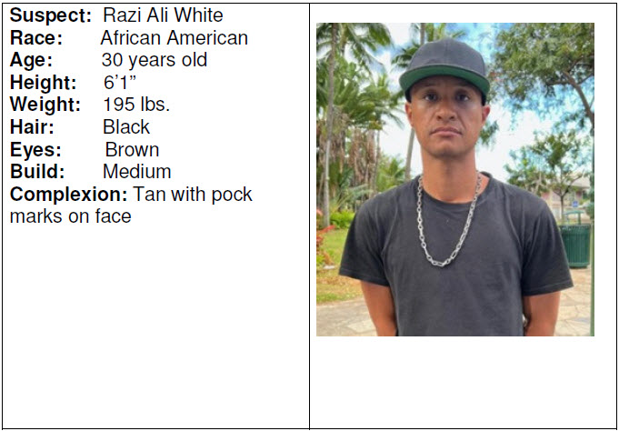 Update: CrimeStoppers and the Honolulu Police Department would like to thank the public for their assistance in locating Razi Ali White.