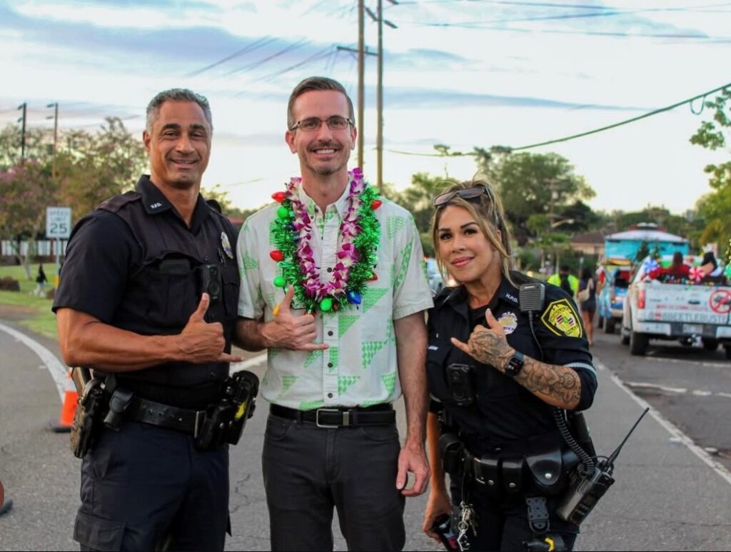 • HPD Officers and Council Member Matt Weyer at the Haleiwa Christmas Parade (December 2025)