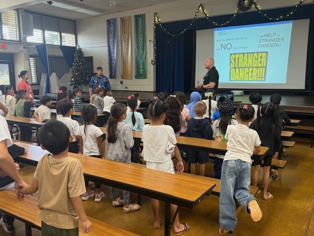 • HPD Officers spoke with students at Waialua Elementary regarding Stranger Danger and safety tips (September 2025)