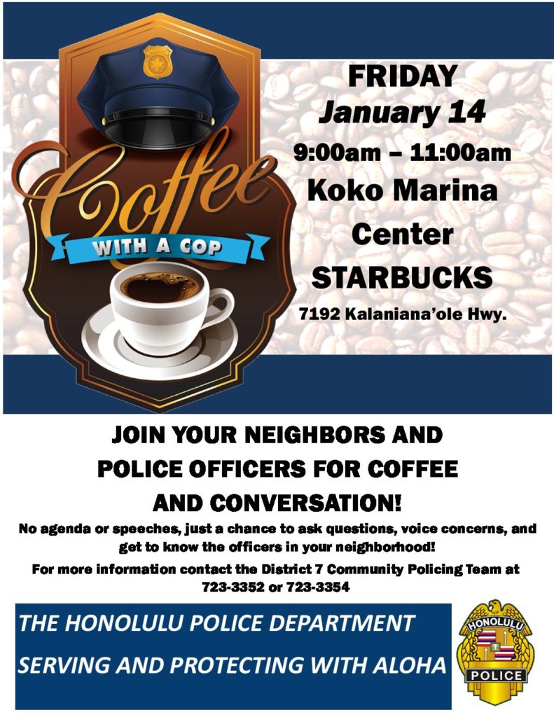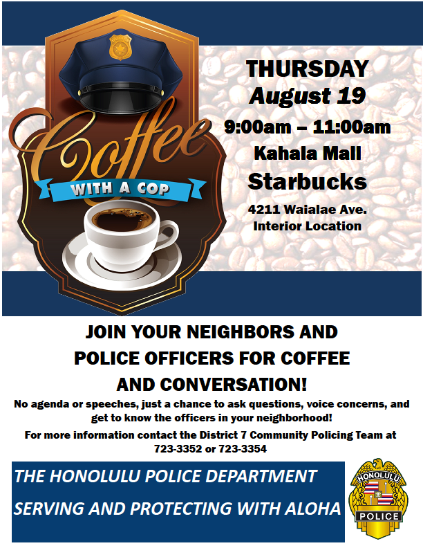 For further information regarding any of the services listed above, please call (808) 723-3354 to speak to the District 7 Community Policing Officer.