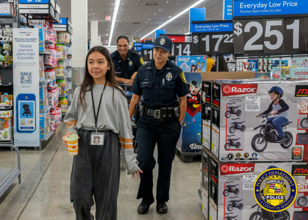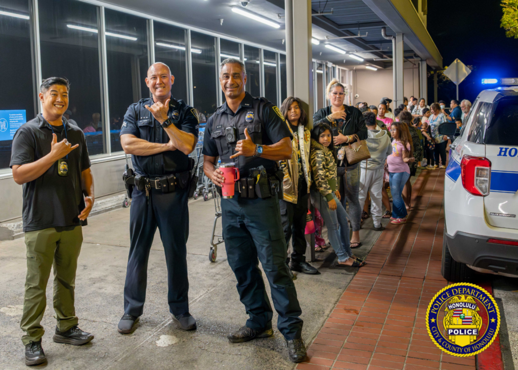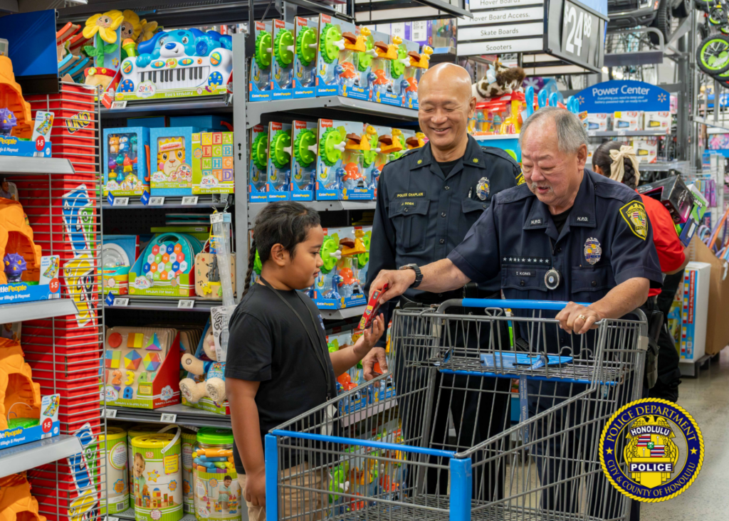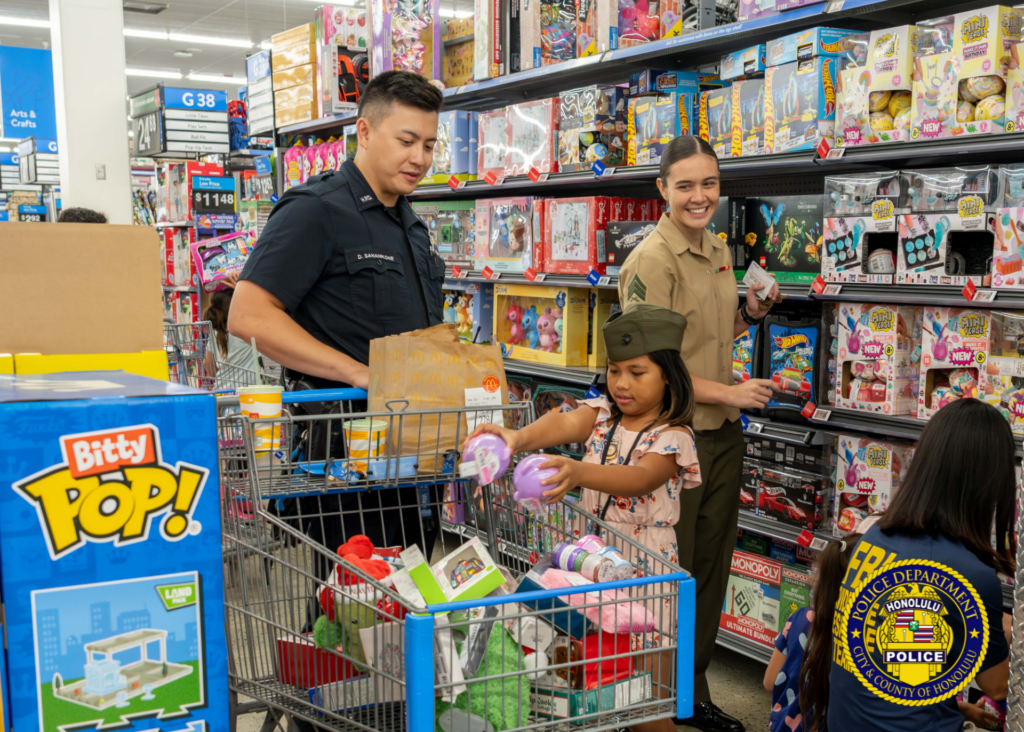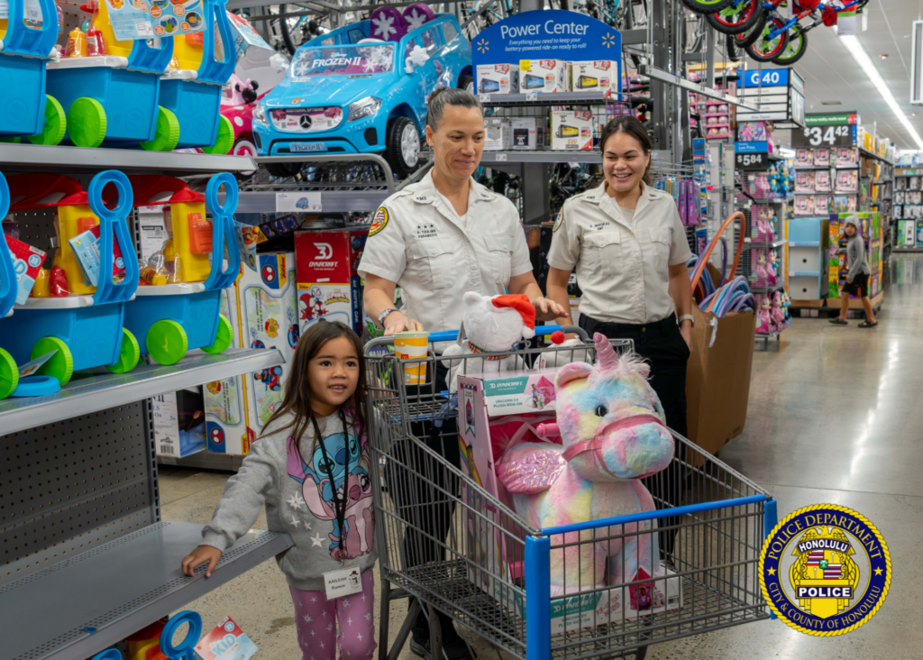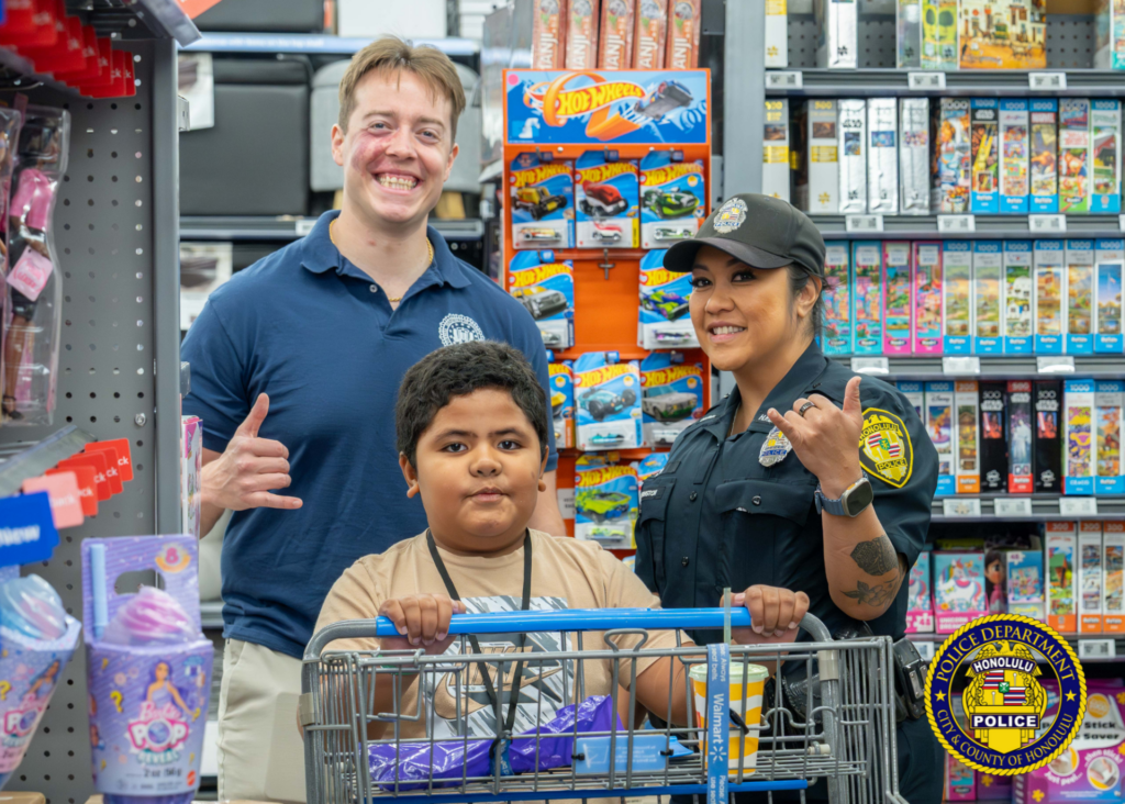 The event connected children from the neighboring communities with shoppers from HPD, the Honolulu Emergency Services Department, Hawai’i Department of Law Enforcement, Federal Bureau of Investigation, U.S. Customs and Border Protection, Department of the Prosecuting Attorney, Hawai’i Army National Guard, Hawai’i Air National Guard, U.S. Marine Corps, U.S. Attorney’s Office, and Shriners Children’s Hawaii.