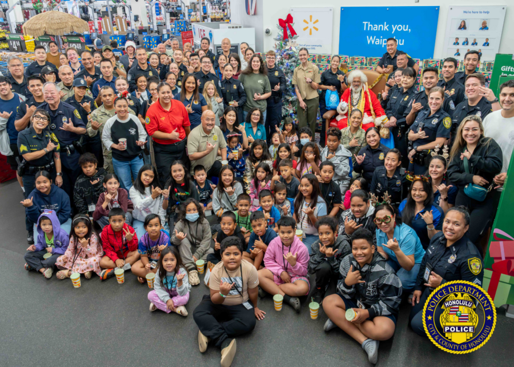 Over the weekend, HPD’s District 3 hosted a community holiday event at Walmart in Waipahu, with support from HPD officers and civilians, Walmart, and Weed & Seed Hawaiʻi. Refreshments and snacks were generously provided by Walmart, and members of the local Lions Club assisted with staffing the table.