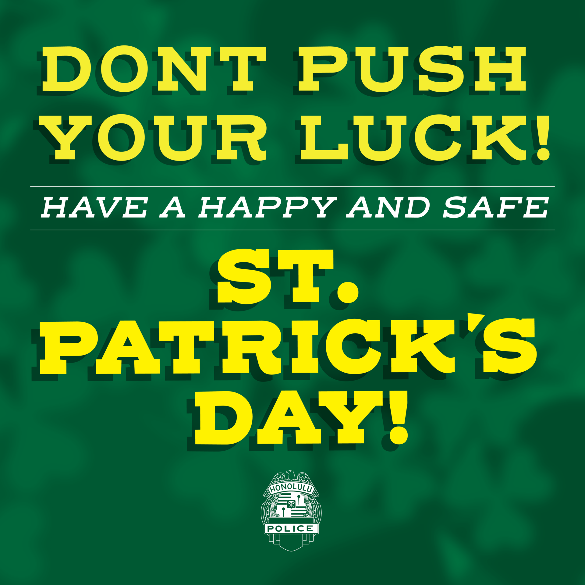 Don’t push your luck! Have a Happy and Safe St. Patrick’s Day!