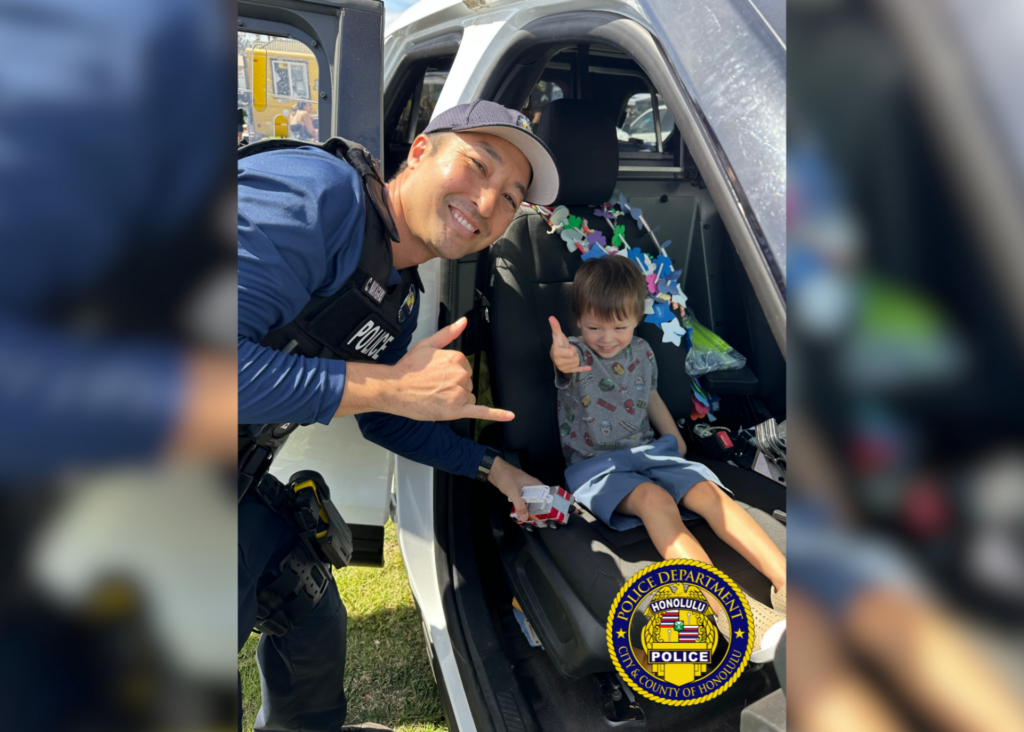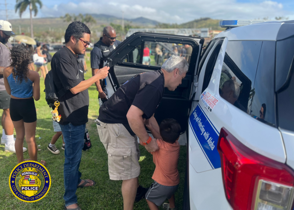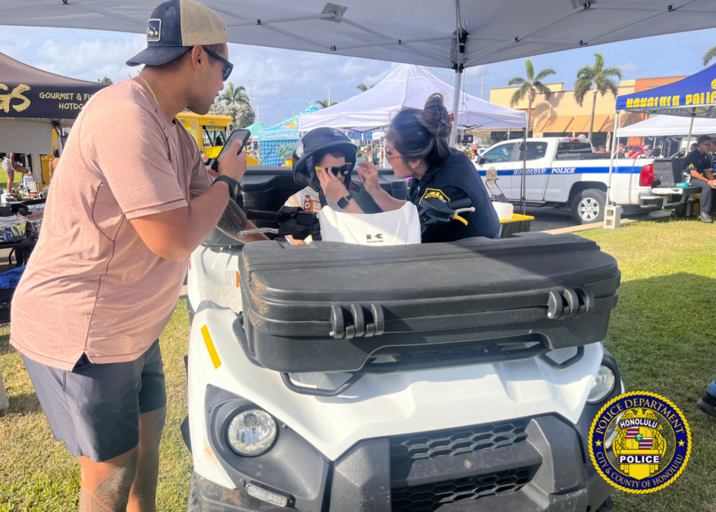 Keiki enjoyed an up-close, hands-on look at a police motorcycle, patrol vehicle, and an all-terrain vehicle (ATV), alongside many other emergency and service vehicles. 🚑🚍🚛