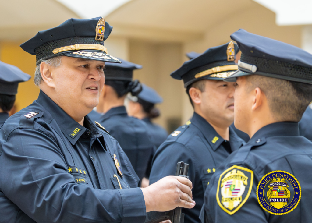 Before tonight’s graduation of the HPD 218th Recruit Class, Interim Chief Vanic inspected each recruit. These recruits were expected to have all their equipment in pristine and working order, and they did not disappoint. From pressed uniforms to shiny boots, these officers are ready to take the Oath of Office. 🎓👮♂️ #GraduationDay #Community #Service