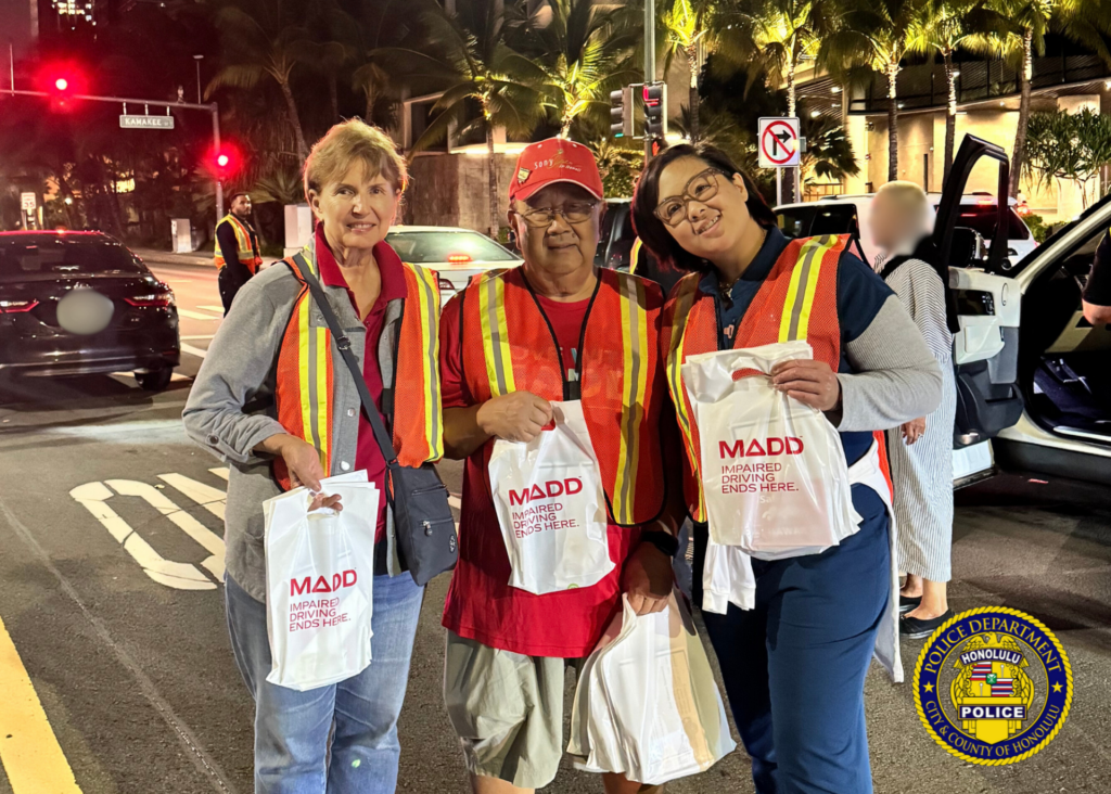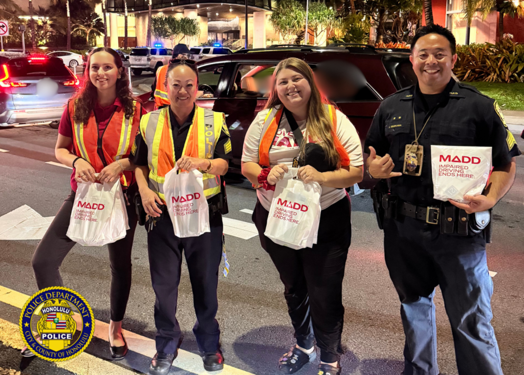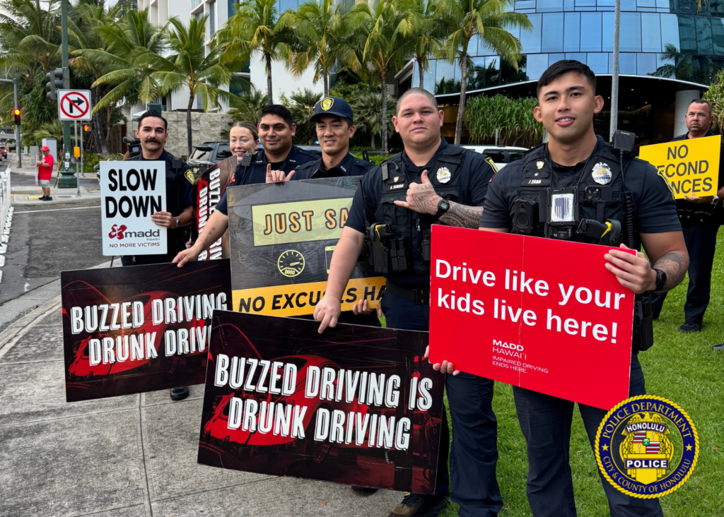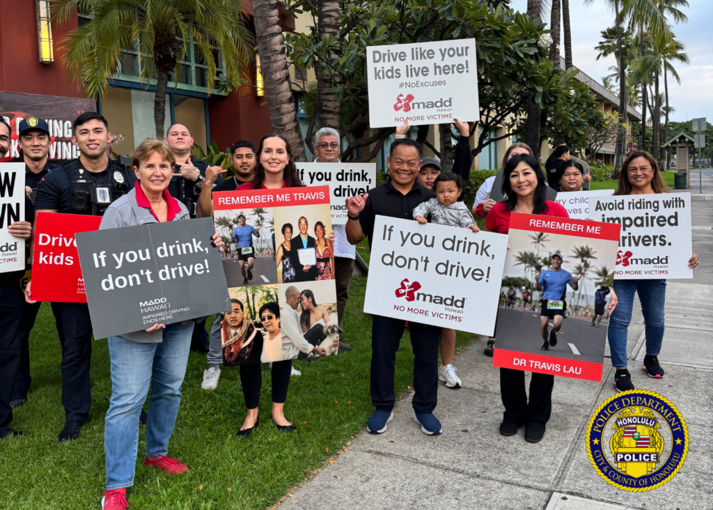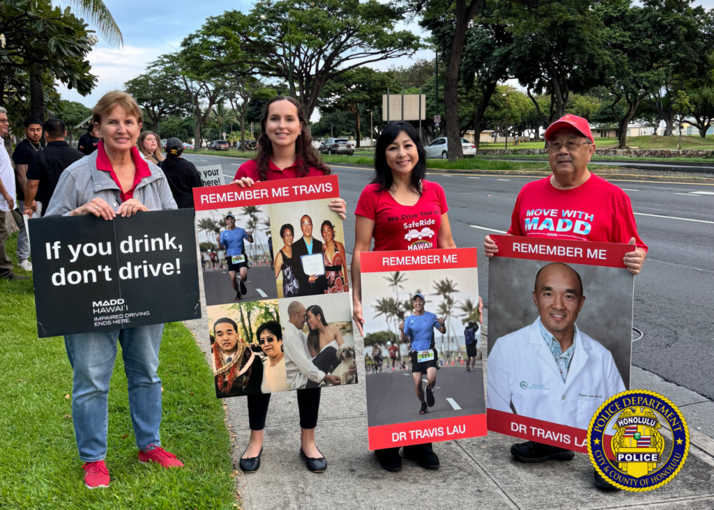 The HPD’s Traffic Division partnered with MADD Hawaii and community members to hold a legacy sobriety checkpoint in honor of Dr. William “Travis” Lau. He tragically lost his life in January 2019 when he was hit by a drunk driver while waiting at a traffic light to cross the street in Kaka’ako. The event started with sign-waving and concluded with officers conducting an impaired driver checkpoint. Let’s all commit to driving sober. Mahalo to everyone who joined us! 🚦🙏 #Traffic #Safety #SaferRoadsTogether #DriveWithAloha #SafeEveryMile