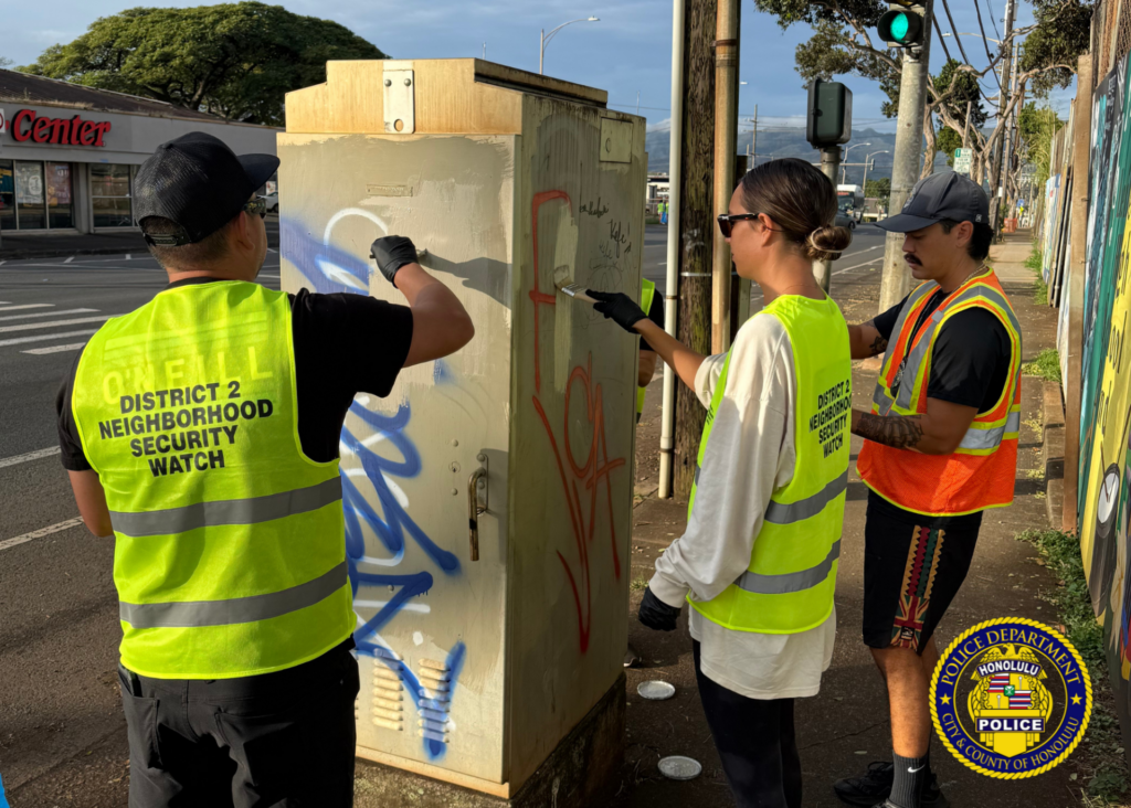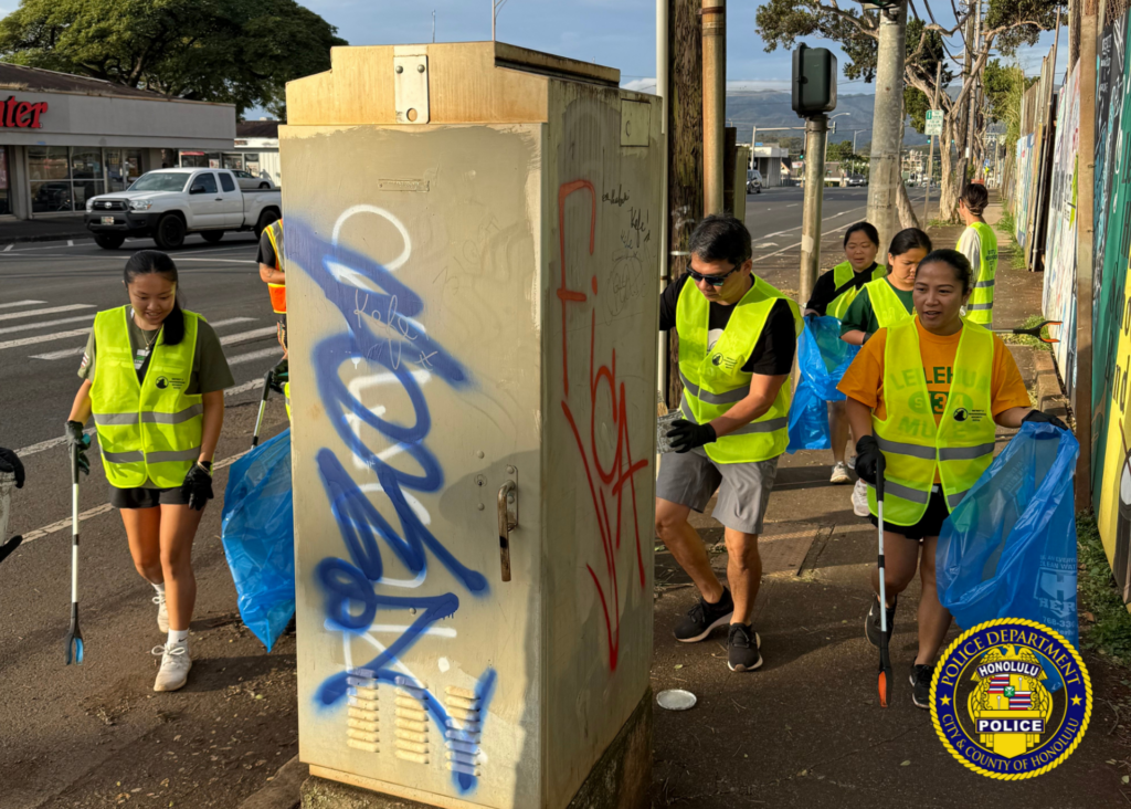 🌟 HPD District 2 Community Policing Team recently hosted a graffiti cleanup event in Wahiawā with the awesome staff and students of Leilehua High School! Everyone worked hard to beautify areas along California Ave, Avocado St, Ohai St, and Kilani Ave. 🌿🌺 Huge Mahalo to the C&C Department of Facility Maintenance for supplying the necessary supplies! #CommunityFirst #CommunityPolicing #Aloha #Instagood 🌈🤝