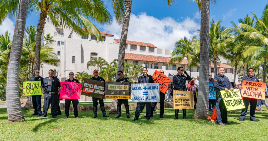 The number of impaired driving arrests has increased by 30%. Officers joined the community for a sign-waving in front of Honolulu Hale to raise awareness.