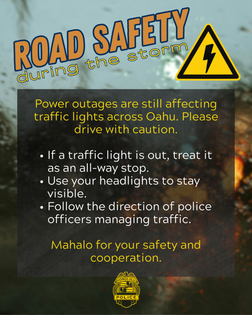 Power outages are still affecting traffic lights across Oahu. Please drive with caution.🚦🚗