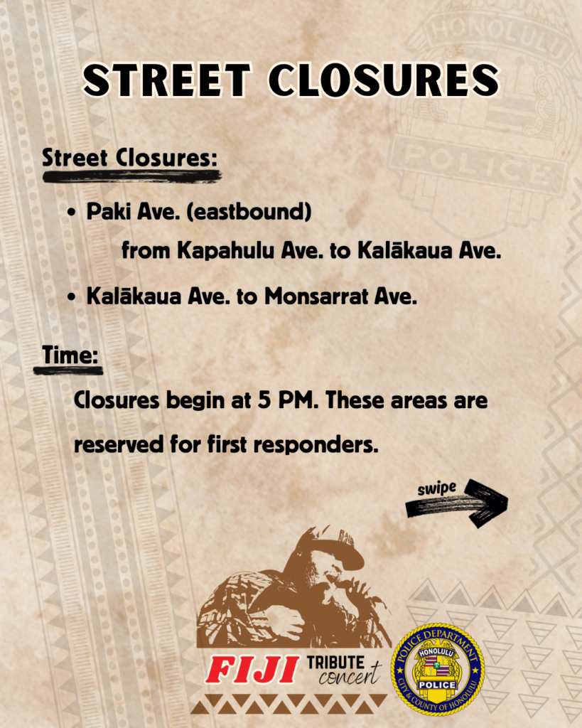 Traffic Advisory for “A Hui Hou Tribute to Fiji” Concert, Sept. 13, 2025