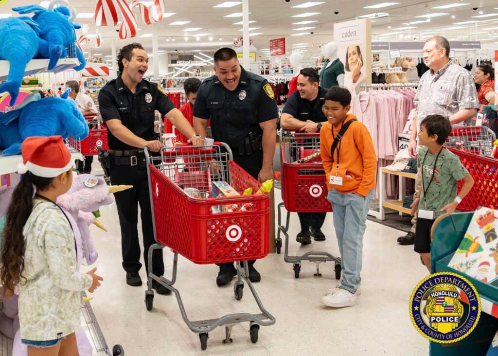 • Over the weekend, HPD partnered with Target Windward Mall, Catholic Charities Hawai‘i, and American Savings Bank to host Windward O‘ahu keiki for the Heroes and Helpers Christmas shopping event with law enforcement officers and first responders. Mahalo to all participating agencies! 🎄#ChristmasShopping#CommunitySupport#HolidayCheer#Mahalo